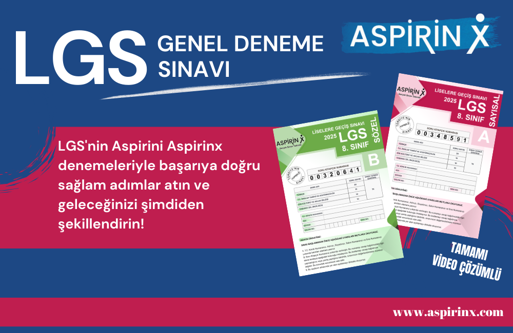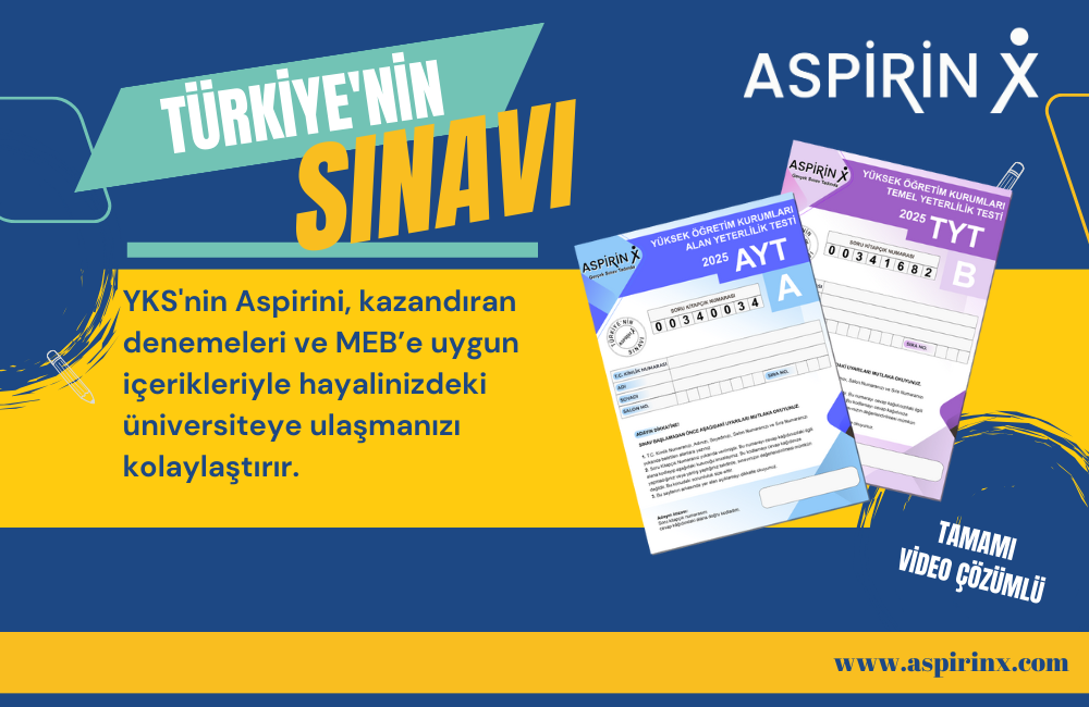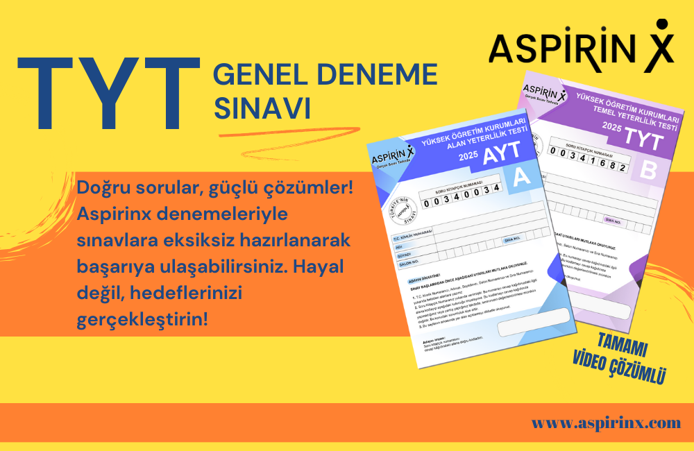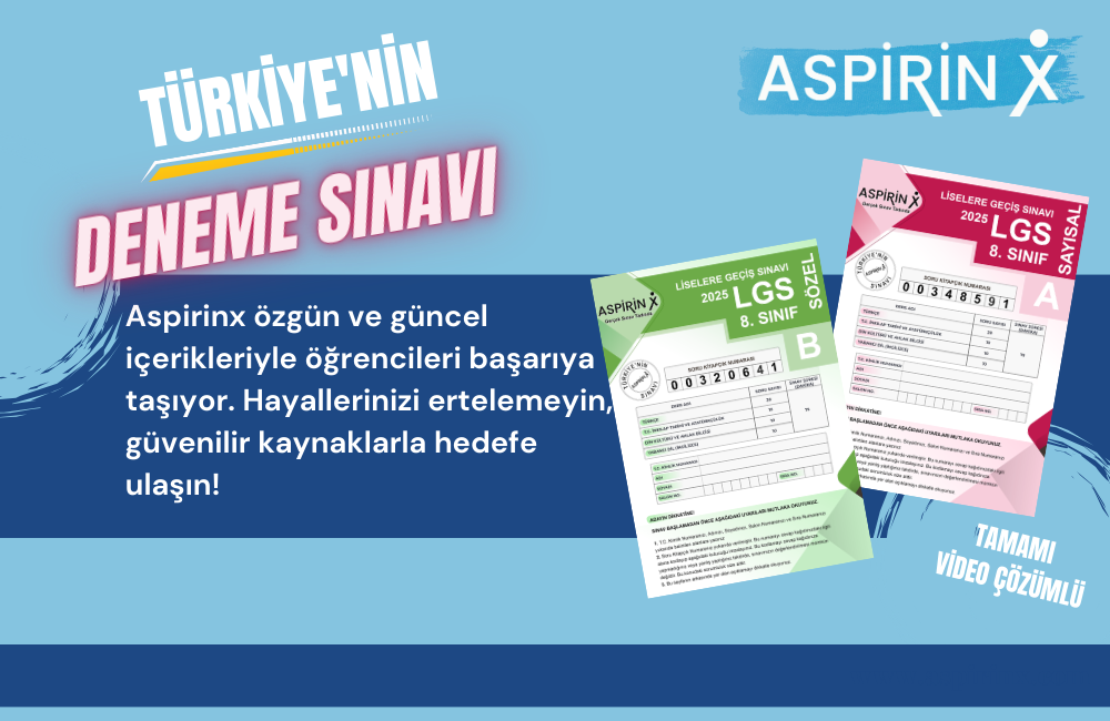 AspirinX deneme sınavlarıyla sınava eksiksiz hazırlanın! Kendinizi test edin, başarıya bir adım daha yaklaşın.