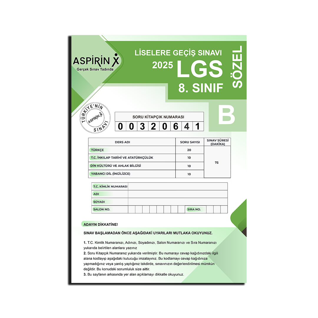 8. Sınıf AspirinX LGS Deneme Sınavı